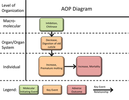 A graphical representation of the AOP.This graphic should list all KEs in sequence, including the MIE (if known) and AO, and the pair-wise relationships (links or KERs) between those KEs.