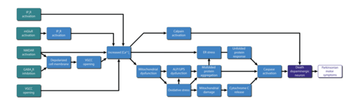 Calcium overload driven development of parkinsonian motor deficits