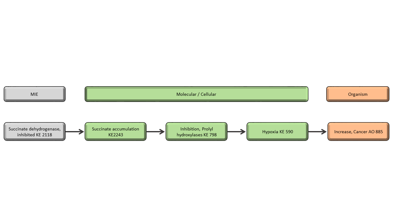 Our hypothesis is that, if SDHi fungicides are able to alter SDH activity in humans, the consequences of SDHi exposure on cellular and mitochondrial functions may resemble those observed in SDH-mutated tumors and SDH-deficient cells. We assume that the development of an AOP deciphering the different steps leading to cancer following a genetically-SDH inactivation could help to propose the exploration of relevant key events and adverse effects upon chronic exposure to SDHi fungicides.