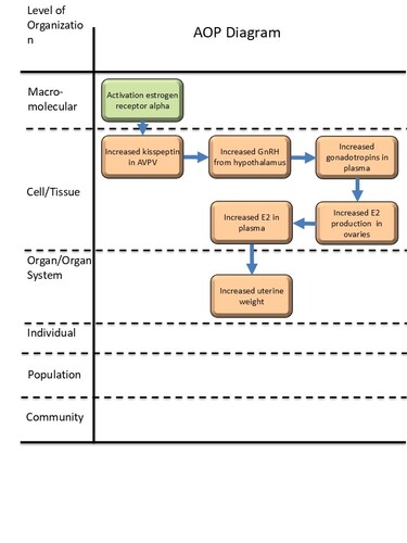 This AOP was part of an Environmental Protection Agency effort to develop AOPs that establish scientifically supported causal linkages between alternative endpoints measured using new approach methodologies (NAMs) and guideline apical endpoints measured in Tier 1 and Tier 2 test guidelines (U.S. EPA, 2024) employed by the Endocrine Disruptor Screening Program (EDSP). A series of key events that represent significant, measurable, milestones connecting molecular initiation to apical endpoints indicative of adversity were identified based on scientific review articles and empirical studies. Additionally, scientific evidence supporting the causal relationships between each pair of key events was assembled and evaluated. The present effort focused primarily on empirical studies with laboratory rodents and other mammals.