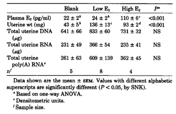 Table 5. Uterine weight, DNA, RNA, and plasma concentrations of E2 in E2-treated OVX mice. from Bergman et al., 1992
