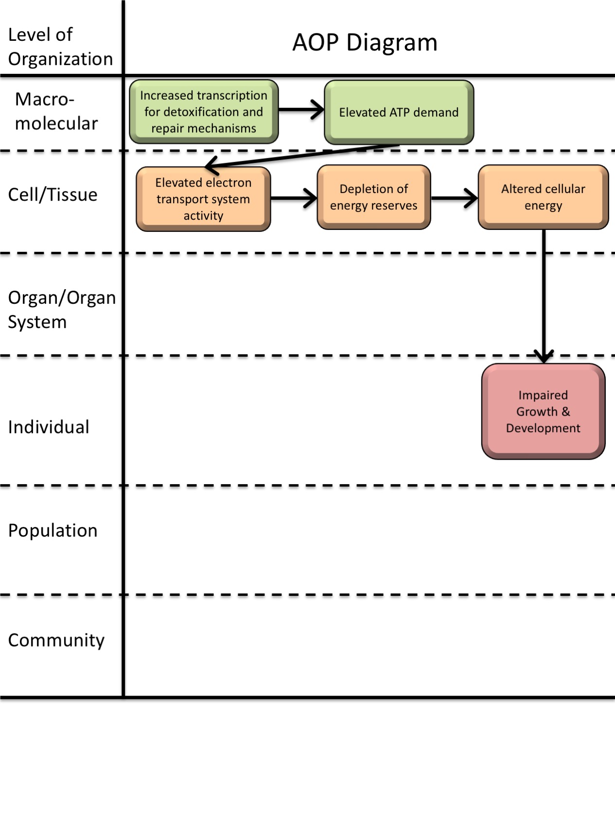 Elevated ATP demand for detoxification and repair mechanisms leading to impaired growth and development
