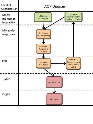 This AOP will collect information about NFkB signaling and will contribute to the mechanistic insights of the inflammatory pathways during hepatotoxicity. Furthermore, since inflammation is a reoccurring KE in several AOPs, this AOP will expand the knowledge of current AOPs of the influence of TNF signaling and compound induced toxicity.