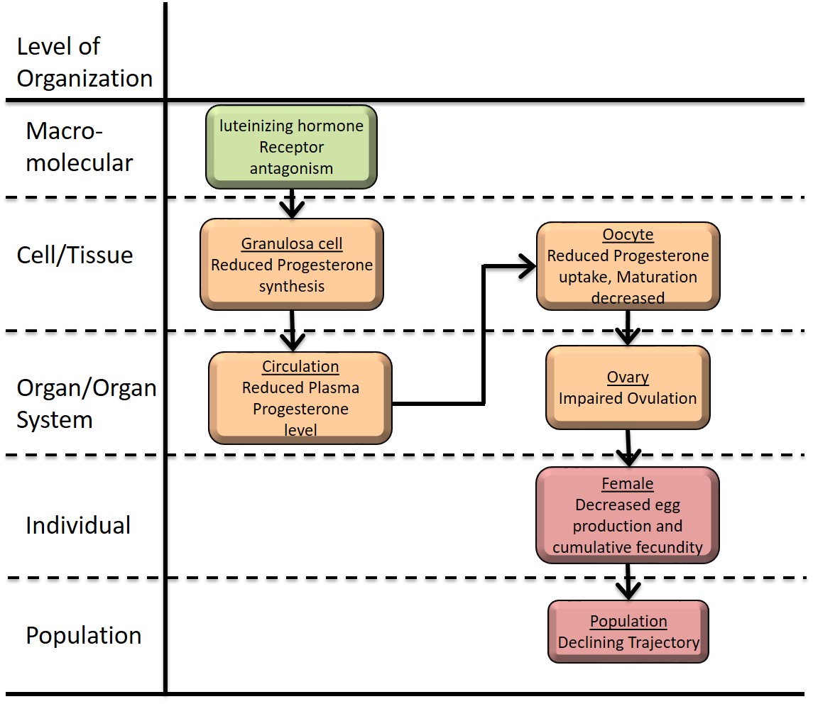 This AOP is designed to detect changes in cumulative fecundity and egg production resulted from the inhibition of LHR by its antagonisms. Alteration of fecundity and ovulation in fish is the critical endpoint for reproductive toxicity caused by endocrine disrupting chemicals. This endpoint is essential and useful for screening of the potential endocrine disrupting chemicals and/or risk assessment. Therefore, this AOP can be applied to the prediction of reproductive toxicity caused by the inhibition of LHR.