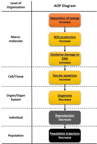 Deposition of energy leading to population decline via DNA oxidation and oocyte apoptosis