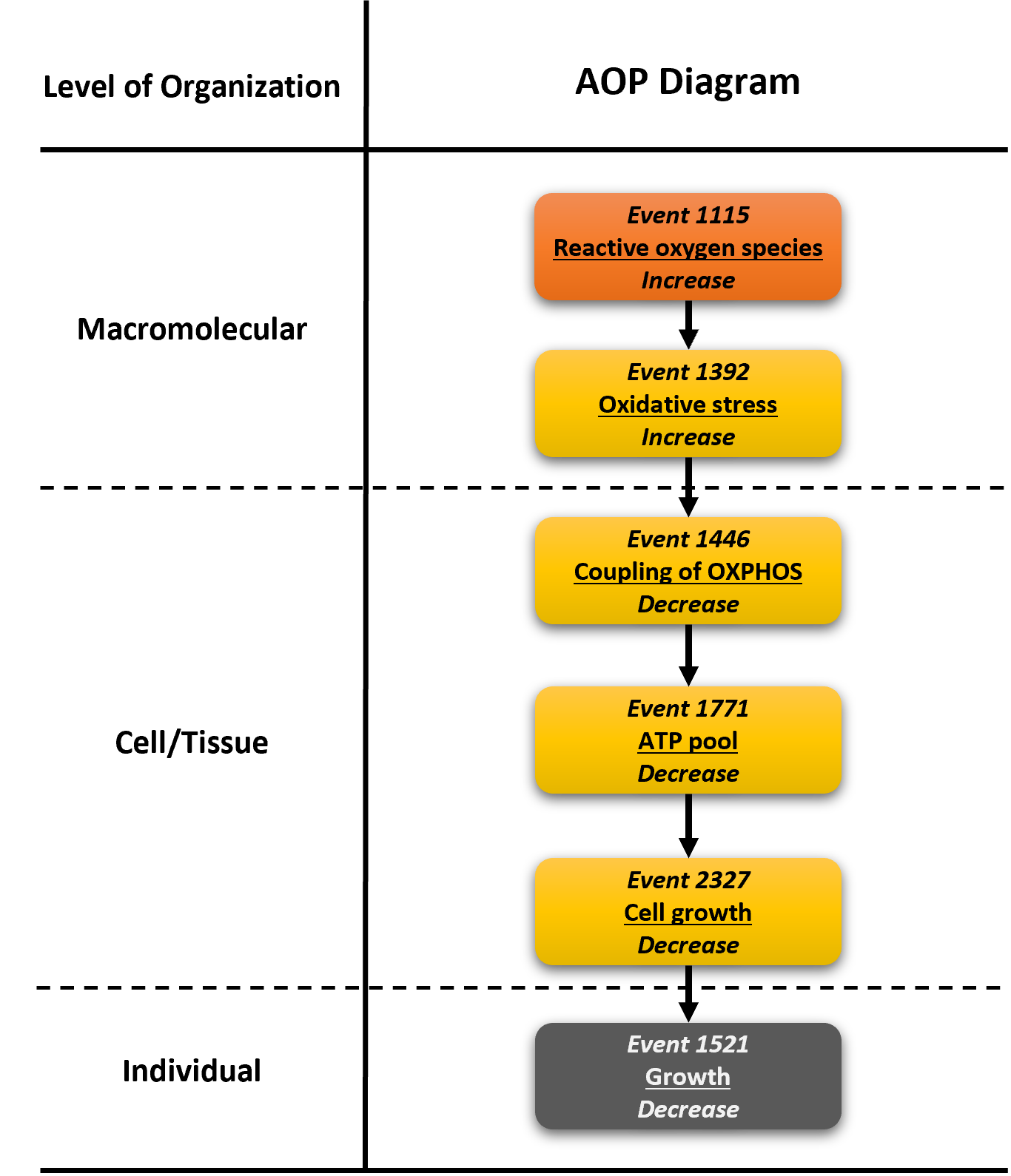 As part of a large AOP network linking ROS to growth inhibition, this AOP mainly describes how excessive ROS formation leads to growth inhibtion via induction of lipid peroxidation and cell death.