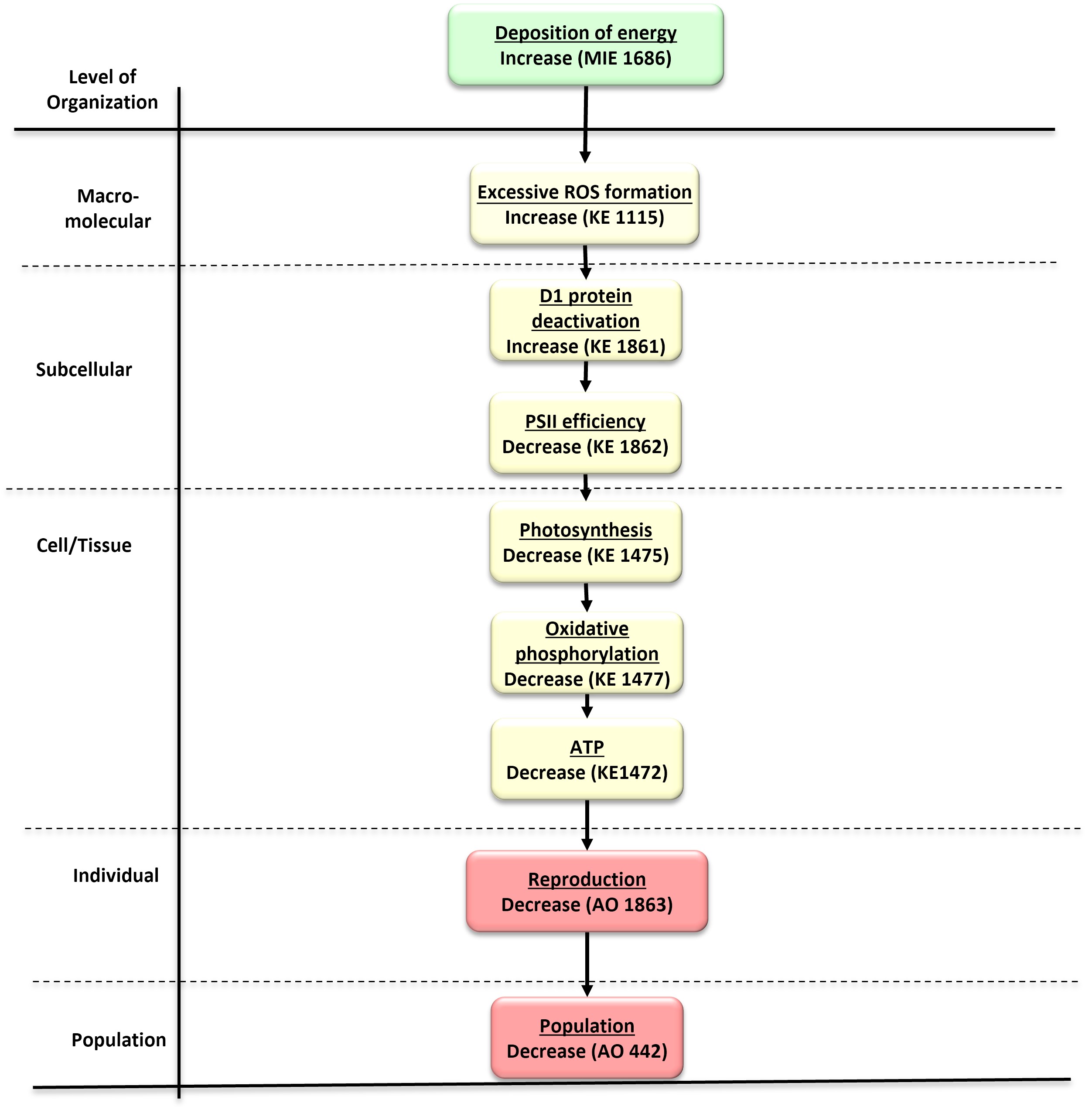 Quantitative data were generated in studies with Lemna minor and the freshwater algae Chlamydomonas reinhardtii exposed to external gamma radiation from a Cobalt-60 source and artifical ultraviolet B radiation (UVB). The quantitative understanding of the AOP was therefore considered to be Moderate for these species and stressors.