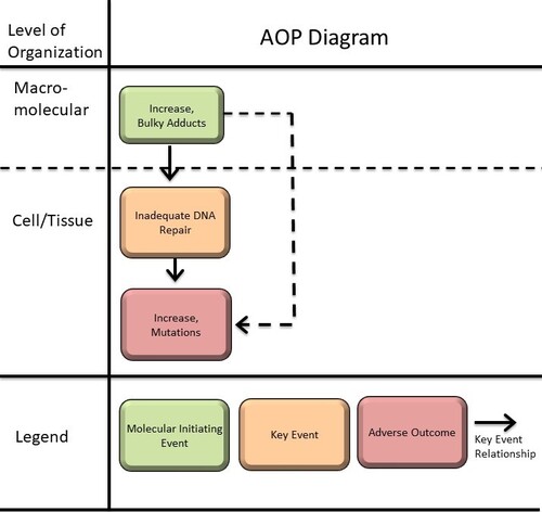 This AOP describes the relationships between an increase in bulky DNA adducts, inadequate repair, and an increase in mutations. Bulky DNA adducts are formed when activated genotoxic aromatic compounds interact with the nitrogenous bases of DNA. While not all bulky DNA adducts are stable, persistent adducts can be inadequately repaired due to incorrect repair if the adduct favors incorporation of an incorrect base opposite the lesion. Inadequate repair of bulky DNA adducts can also occur due to lack of damage repair or due to incomplete repair. Inadequate repair (due to incorrect repair, lack of damage repair or incomplete repair) can then lead to the formation of mutations during later replication.