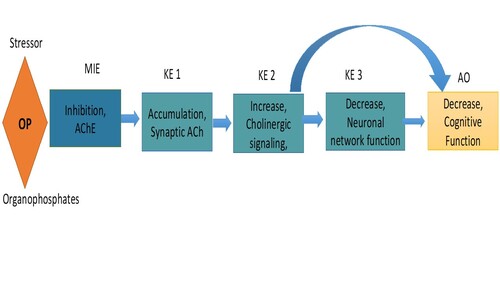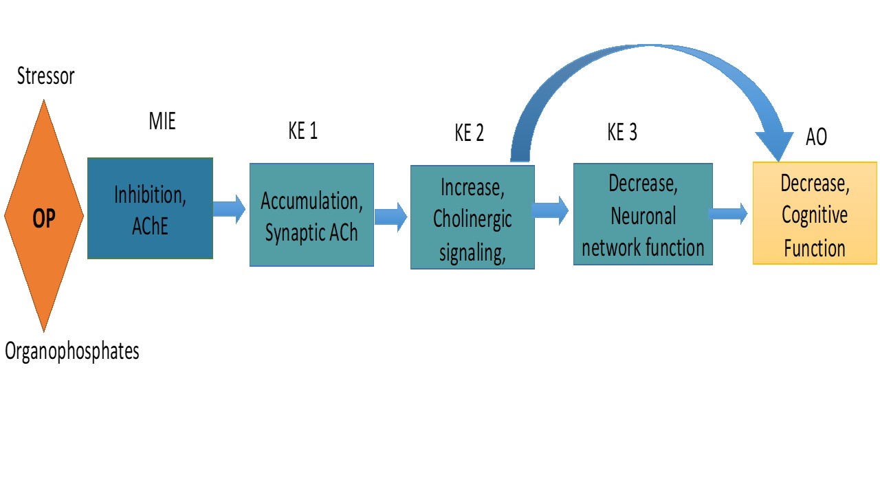 Although the present AOP may require supplementary conditions to fully establish the neurotoxicity potential of OP pesticide and their mode of action. This AOP is an attempt to establish the mechanism of organophosphorus (OP) pesticides induced cognitive defects via cholinergic signaling. It can also be applied to risk assessment in predictive modeling of OP pesticide toxicity.
