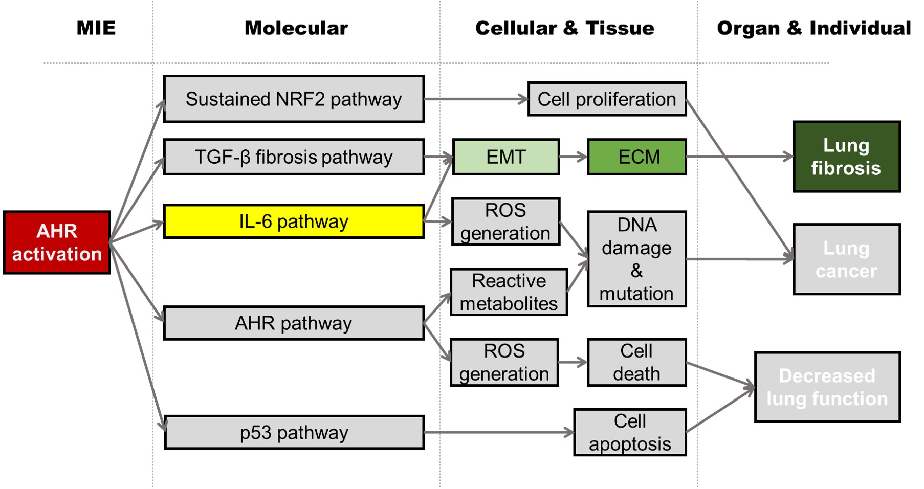 AHR activation leading to lung fibrosis via IL-6 tox path