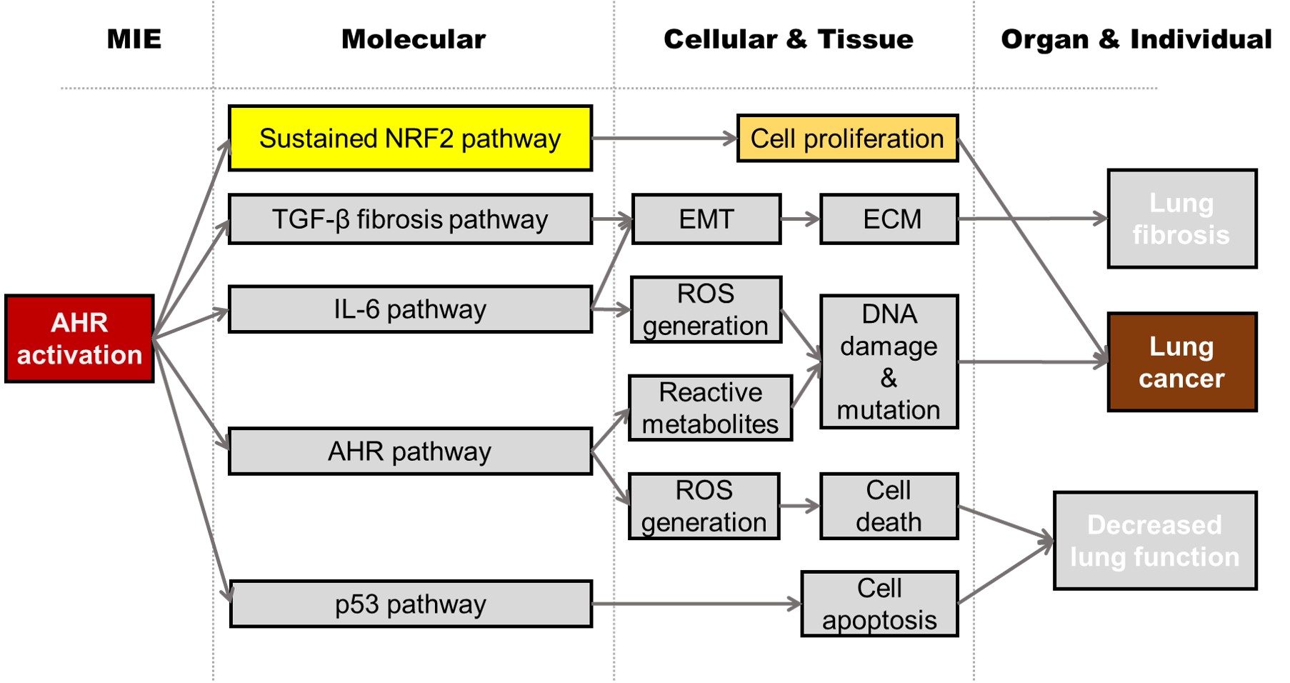Aryl hydrocarbon receptor activation leading to lung cancer through sustained NRF2 toxicity pathway