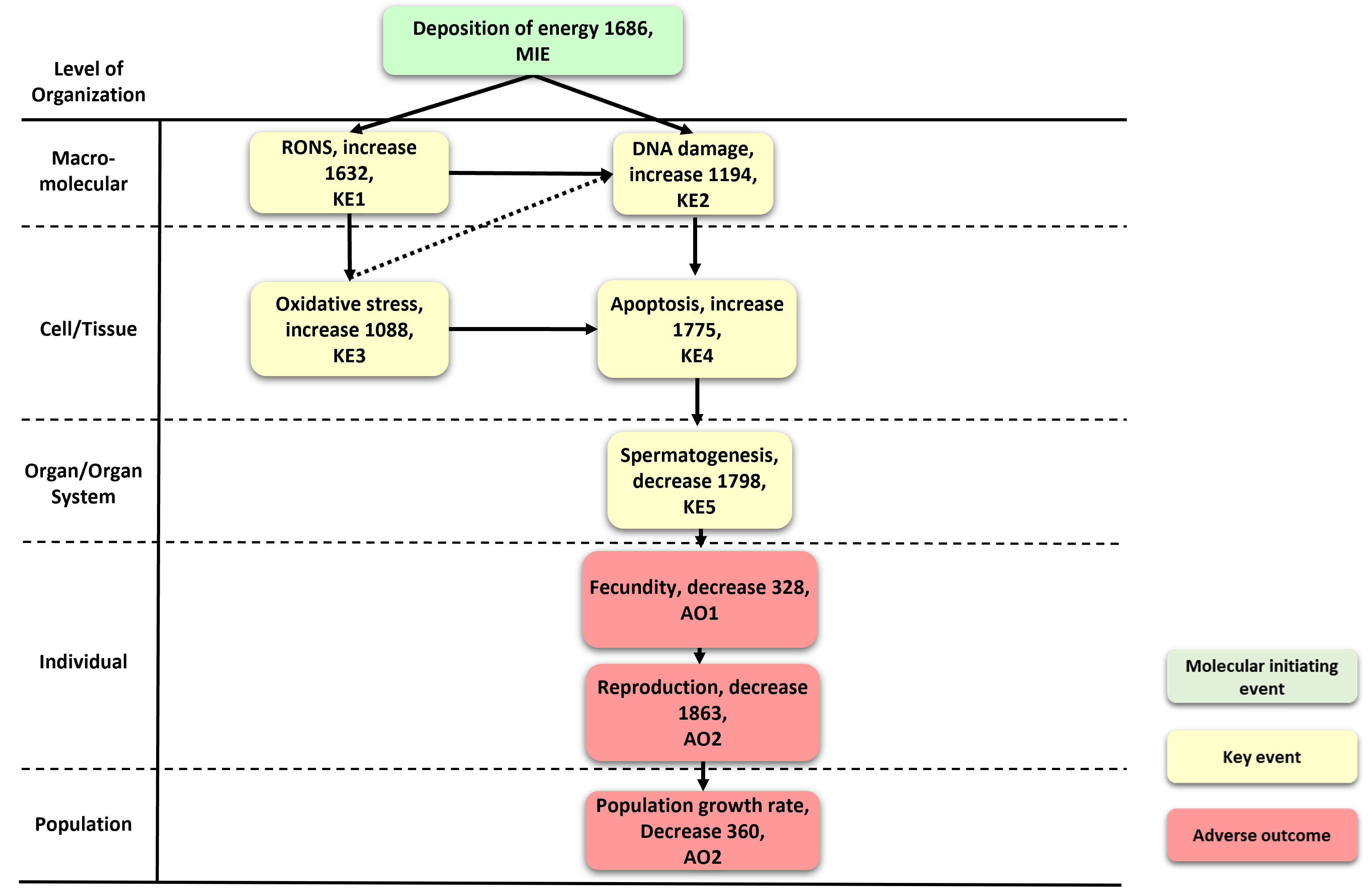 | MIE | 1632 | Increase in reactive oxygen and nitrogen species (RONS) | Increase in RONS |