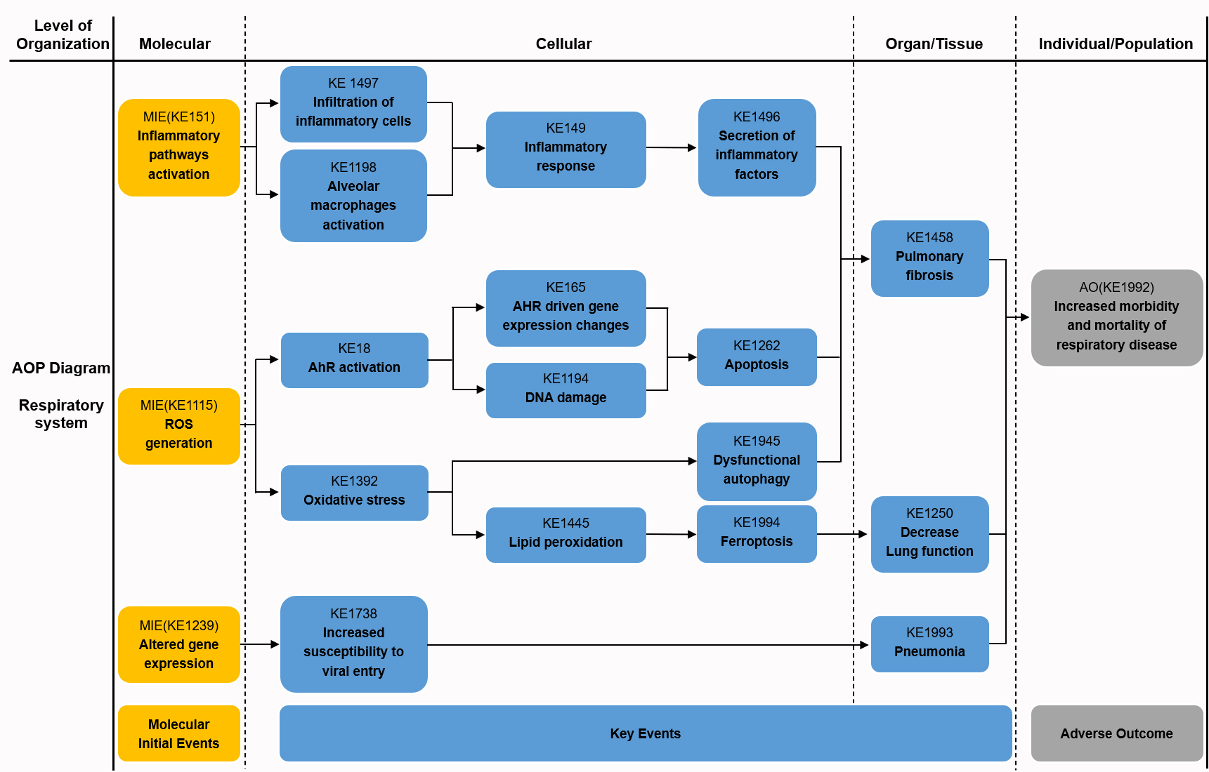 A graphical representation of the AOP.This graphic should list all KEs in sequence, including the MIE (if known) and AO, and the pair-wise relationships (links or KERs) between those KEs.