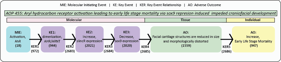 | 1.27 | WPHA/WNT Endorsed | AOP Report: Aryl Hydrocarbon Receptor Activation Leads to Early–Life Stage Mortality via Sox9 Repression‐Induced Craniofacial and Cardiac Malformations | OECD Series on AOPs: Aryl hydrocarbon receptor activation leading to early life stage mortality via sox9 repression induced impeded craniofacial development |